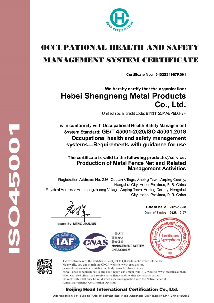 Стать международным ведущим поставщиком решений в области защиты и поддержки инфраструктурной безопасности. Мы стремимся с помощью инновационных технологий стимулировать модернизацию отрасли, укреплять каждый рубеж и каждую опору превосходным качеством, чтобы ООО Хэбэй Шэннэн Металлоизделия стало мировым доверенным фундаментом отрасли, помогая строить мир более прочным и прекрасным.
